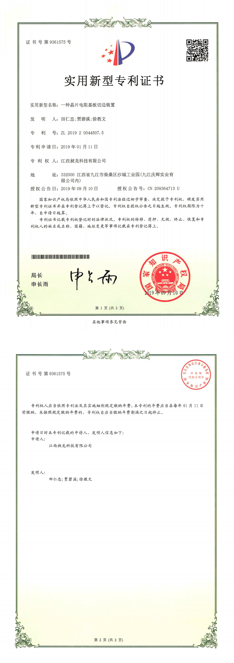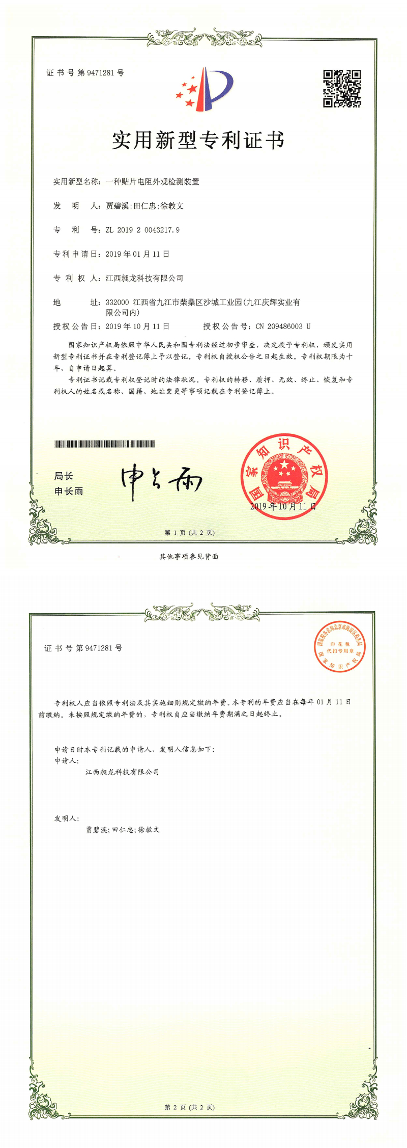 其他专利证书